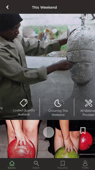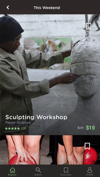 The explore page surfaces content personalized to the user's preferences. The organization of content took inspiration from the way Netflix organizes content, through specific “channels” that relate to your browsing habits. The user influences channels and content that appears, based on their onboarding along with interactions with bookmarked deals.